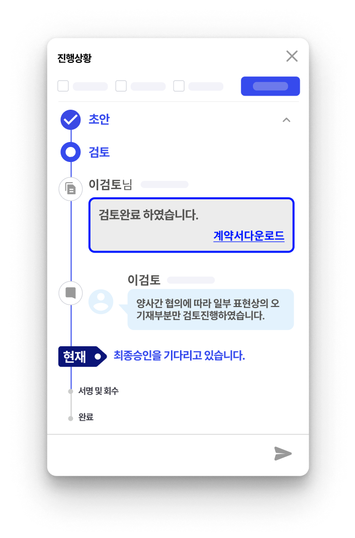 검토중 변경되는 계약 문서들, 버전별로 관리되고, 업무 이력을 빠르게 “비교” 할 수 있습니다.