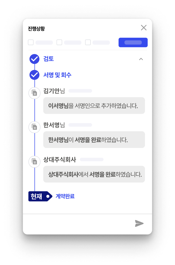 법틀은 각각의 업무에 진행상황이라는 정보공간을 제공해 드립니다. 진행상황에는 해당 업무에 대한 모든 히스토리, 관련 자료, 이메일 내용까지 모두 정리되어, 보다 빠르게 검토할 수 있습니다.